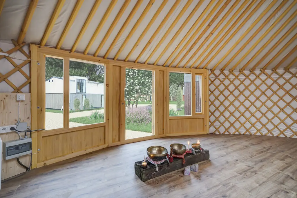 De workshop yurt biedt een inspirerende natuurlijke setting voor inspirerende en verbindende workshops