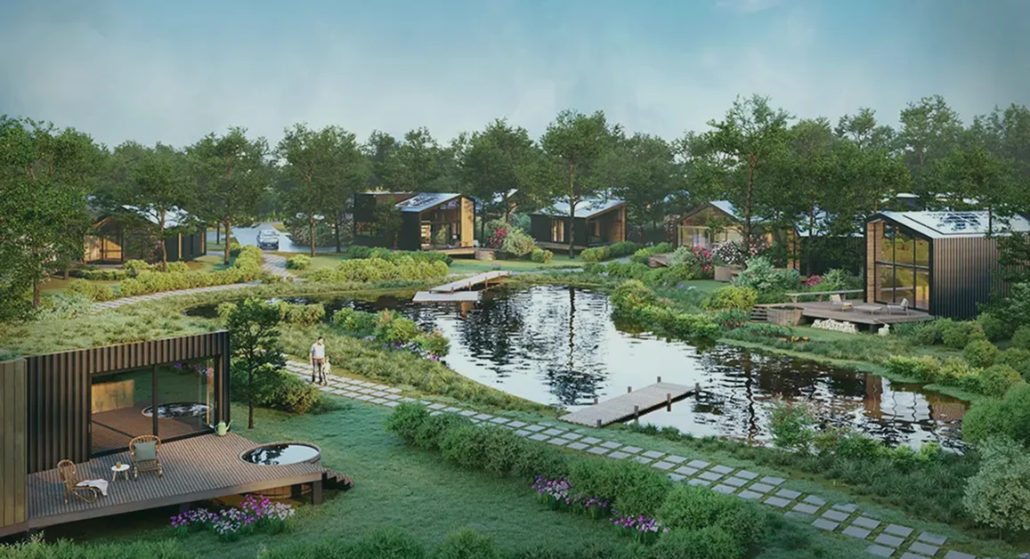 De duurzame villa's worden gebouwd met zorgvuldig geselecteerde, ecologische materialen. Dankzij het circulaire en modulaire ontwerp kunnen alle onderdelen in de toekomst worden hergebruikt.