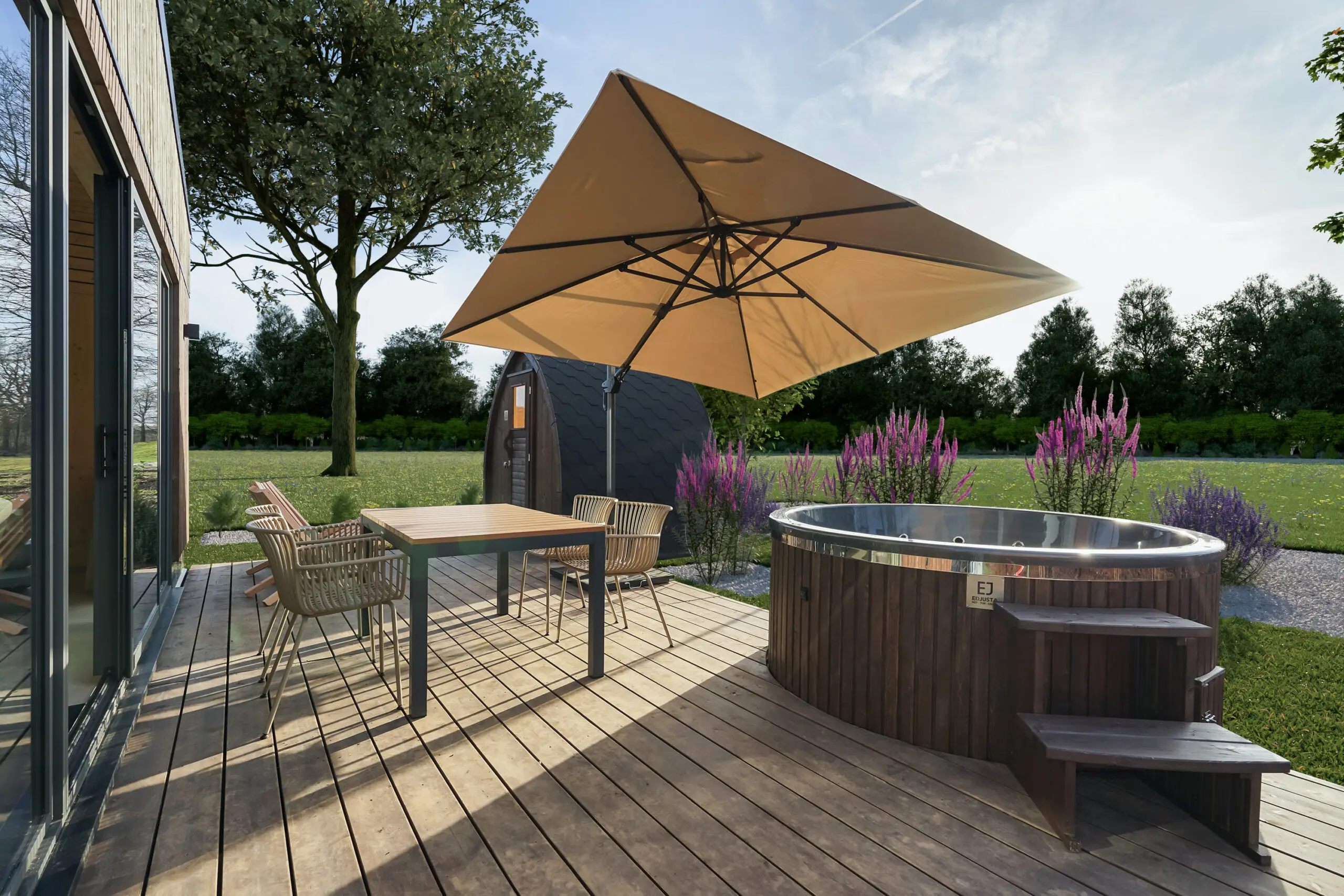 Iedere villa beschikt over een privé sauna en jacuzzi, ontworpen voor ultieme ontspanning en comfort, zodat je volledig tot rust kunt komen midden in de natuur.